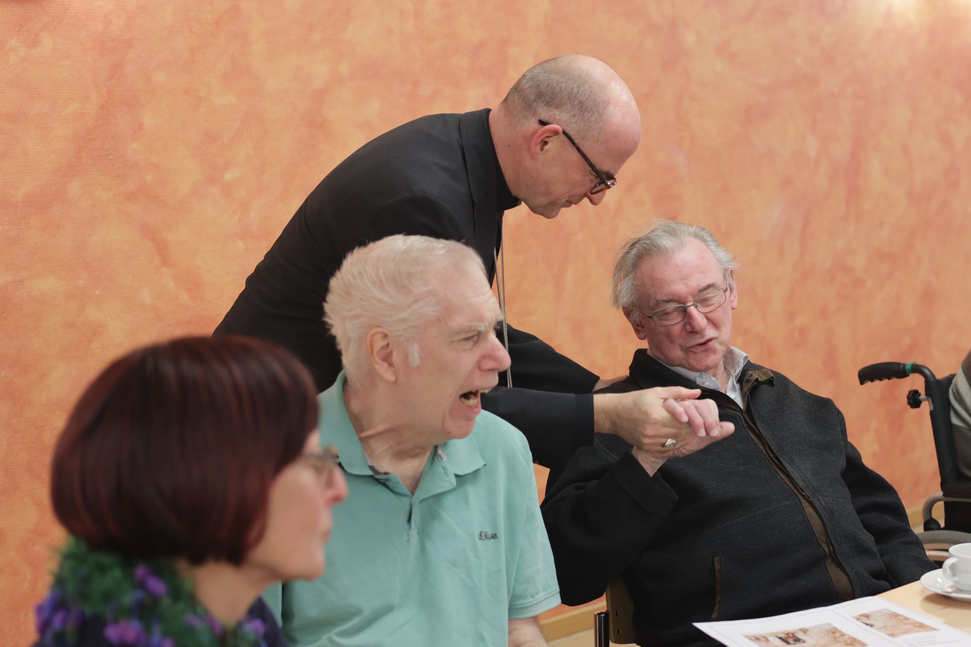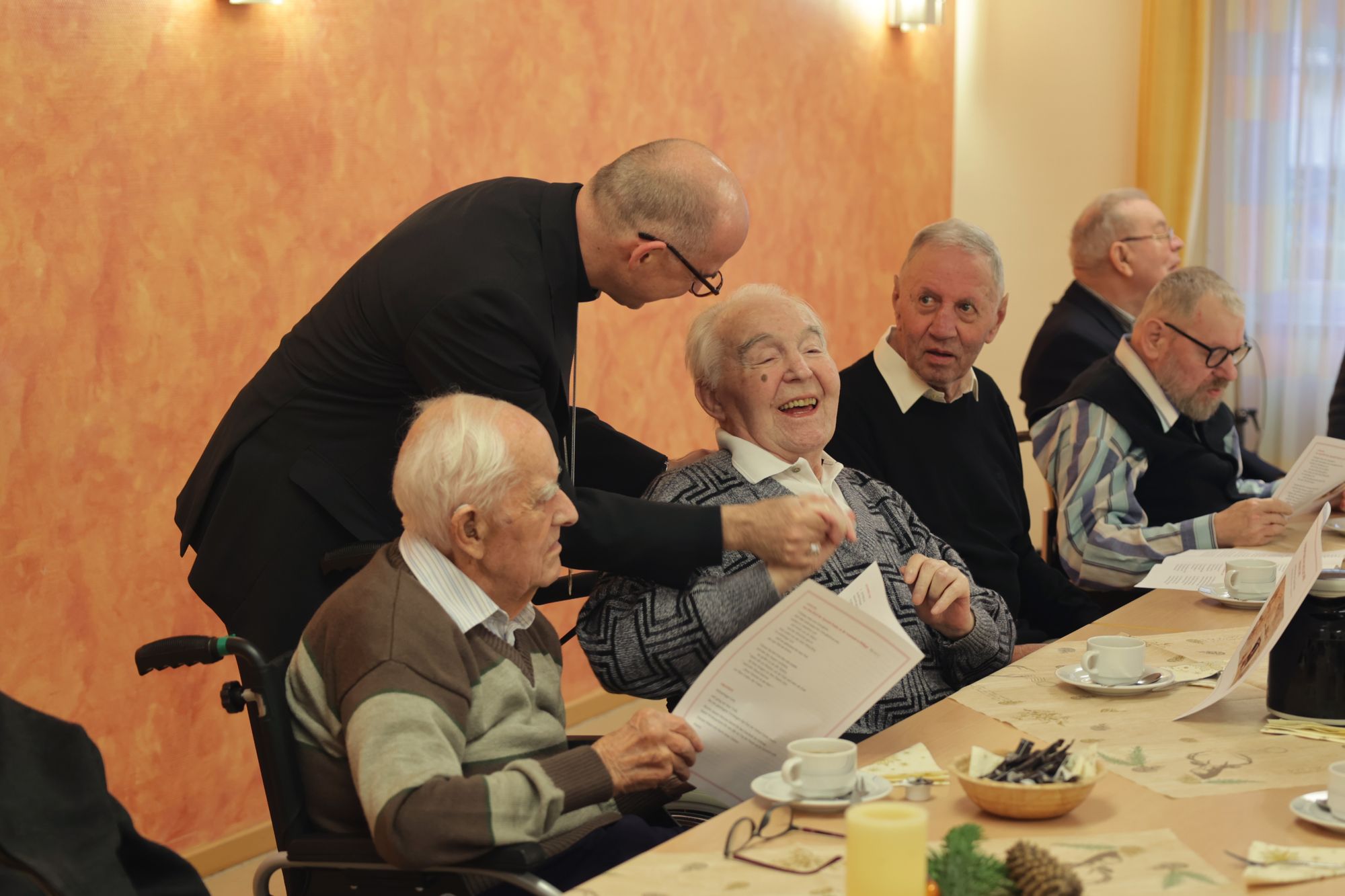 Würzburg (POW) Zu einer vorweihnachtlichen Begegnung mit den dort lebenden Ruhestandspriestern ist Bischof Dr. Franz Jung am Freitag, 19. Dezember, in das Caritas-Seniorenzentrum Sankt Thekla in Würzburg gekommen.