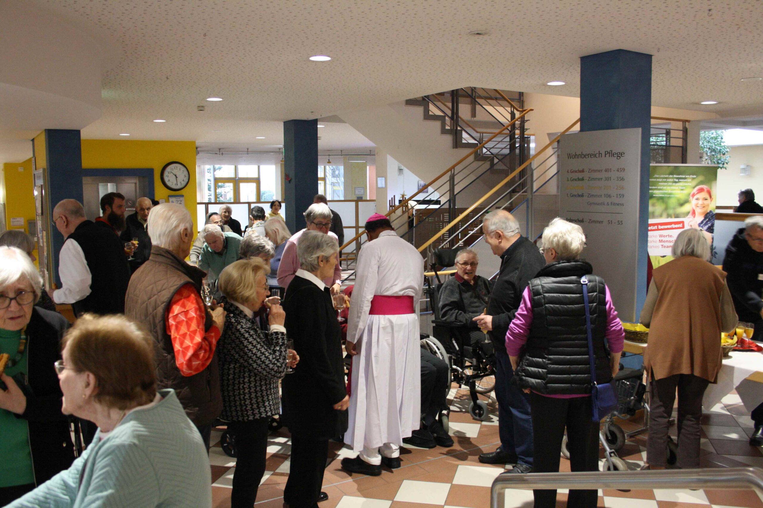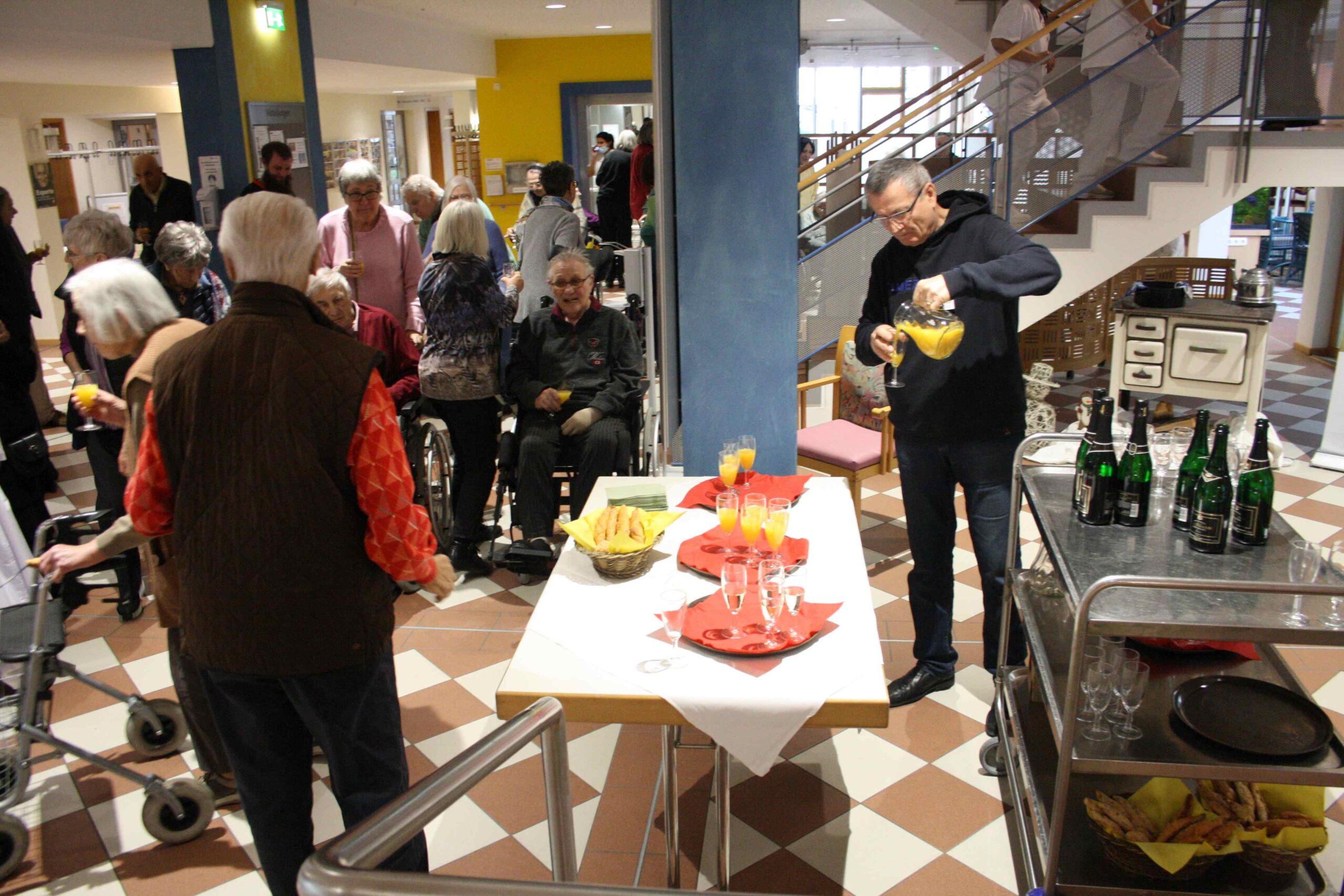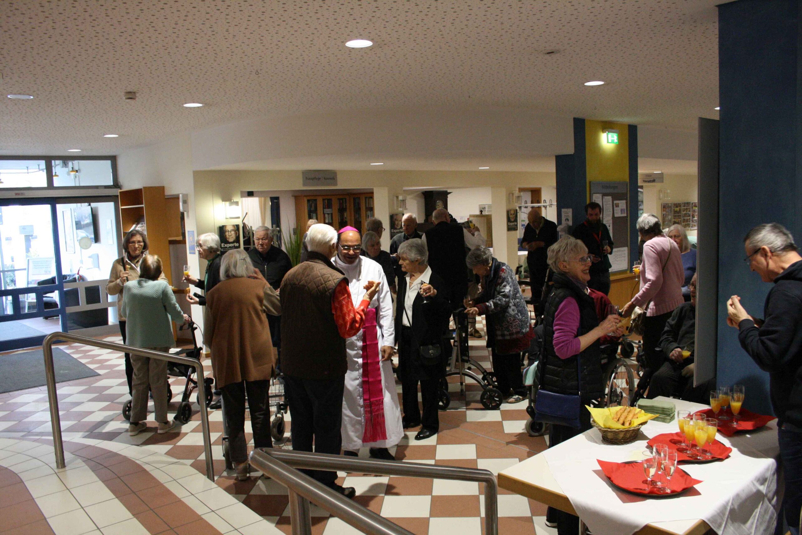 Anschließend war im Foyer ein Stehempfang mit Begegnung für alle hier im Haus bei Sekt und Knabbereien.