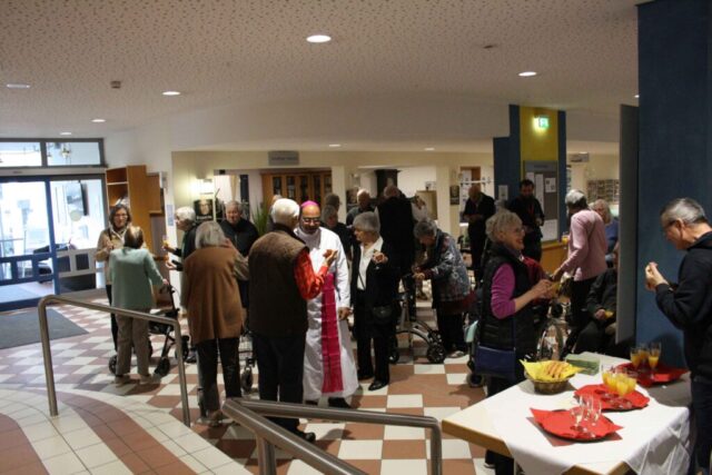 Bischof James nahm sich viel Zeit für persönliche Gespräche und verabschiedete sich als langjähriger Begleiter unseres Hauses.